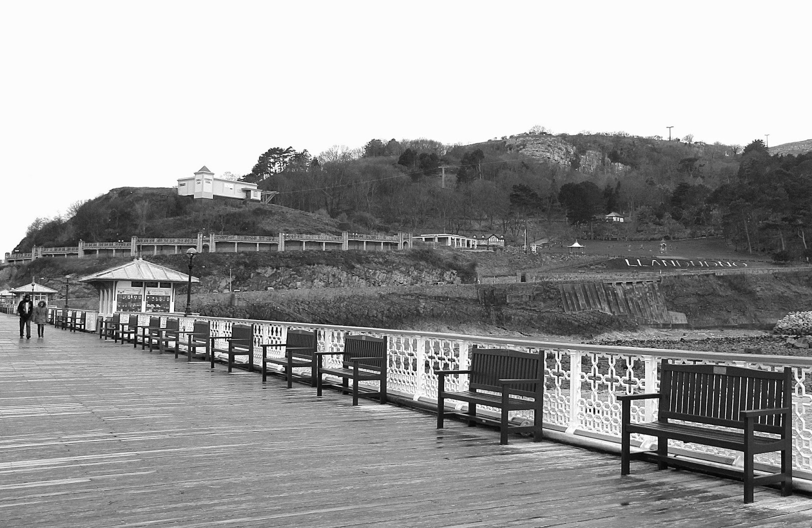 Stroll just beyond the amusement arcade and icecream kiosks and the mood changes. Llandudno pier is now lined with memorial benches dedicated to those who once "loved it here". Little bunches of plastic flowers sit sadly on some of the harsh lumps of wood. The graceful wrought iron lacework, which was created when piers were built for a happy walk by the sea, is largely hidden from view.